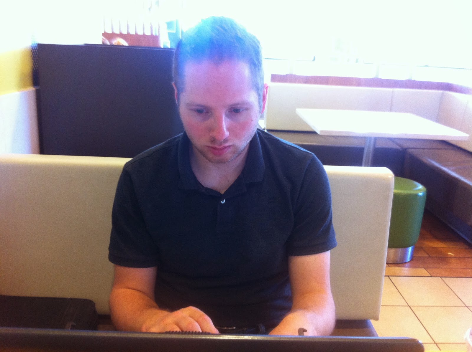 Now that most of the day’s plans had been taken care of we decided to head back to a McDonald’s to figure out where we to go on Day 5, we aren’t sure if we’re going to head through Memphis or Kentucky. Through some excellent timing, John managed to catch me in an extremely odd position sitting there, looking like I was in some sort of meat coma (I was). Memphis didn’t really speak to me last time I was there as far as food went, and I’d like to see what Kentucky has to offer (and increase my states visited count). We still haven’t decided, but we did find a showtime to go see Godzilla and we headed to a nicer area of Kansas City and walked around a bit and got some tickets for the show.