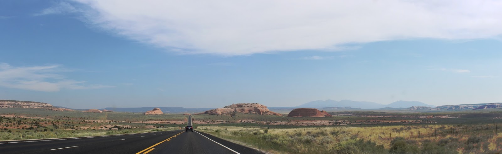 When you are planning a route based on the weather forecast on your phone in a McDonald’s, you don’t always check every single place along the way. It turns out that even when you go north, you still have to drive through the Utah desert for a couple of hours. It was 40 degrees, and that’s cool (or not), but when it’s too hot to use the A/C, it kind of sucks. Still, the rock formations were interesting, and the speed limit was 80 mph (130 km/h), so at least we were motoring.